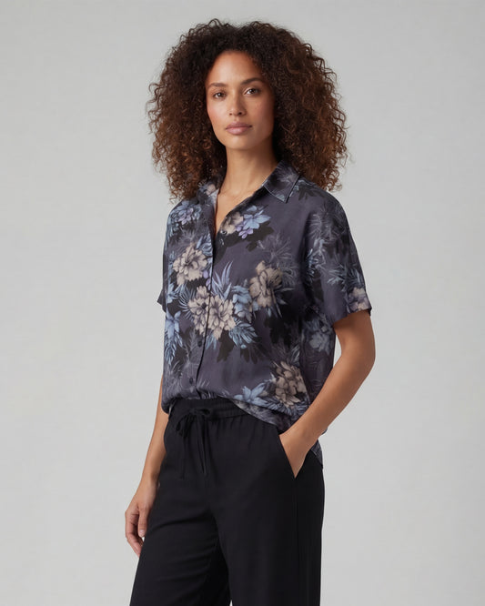 LARA EXOTIC FLORAL BLACK WOMENS LINEN PRINTED SHIRT