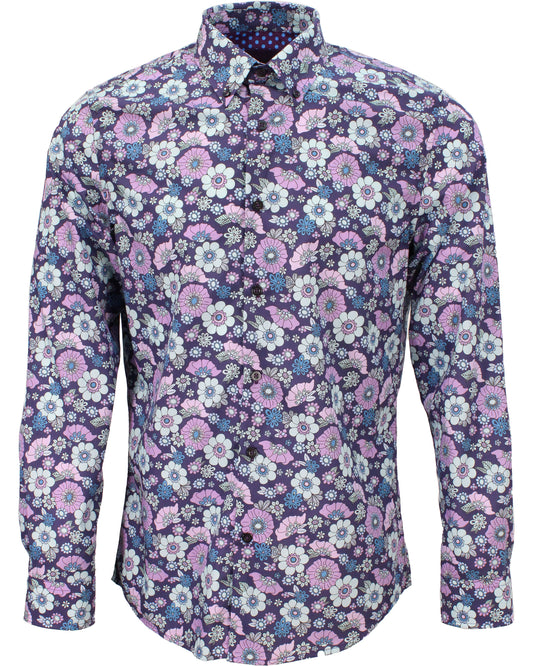 MORRIS CORAL GARDEN SHIRT IN PURPLE