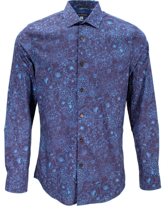 NIGEL OUTLINE FLORAL SHIRT - BLUE