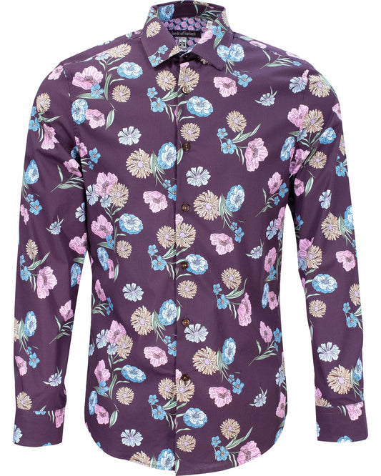 NIGEL SPACED FLORAL SHIRT - PLUM