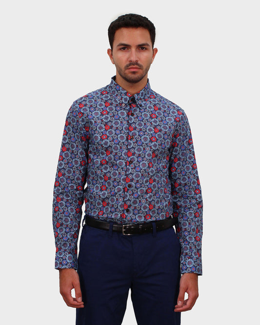 NIGEL SPACED FLORAL SHIRT - NAVY