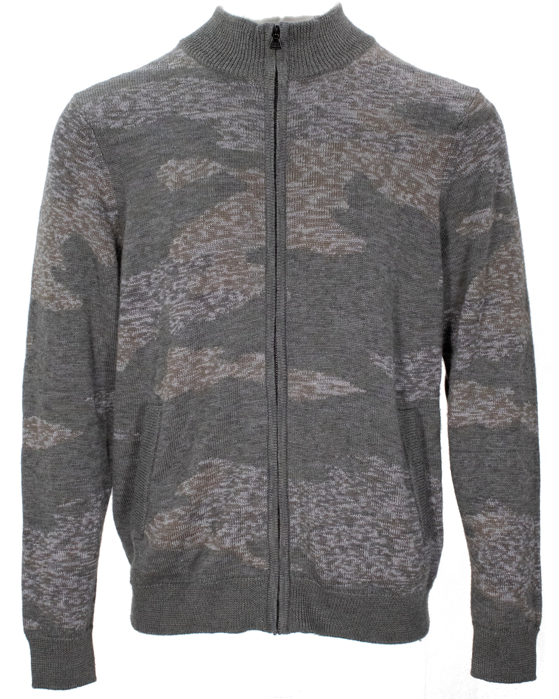 The Carlo full-zip sweater is made from merino wool. That means it has the uncanny ability to insulate when it's cold and expel sweat vapor when it's warm. That merino paired with silk and cashmere really ramps up the coziness. Throw in a fabulous intarsia (multi-color) knit pattern and you have a next-level sweater.