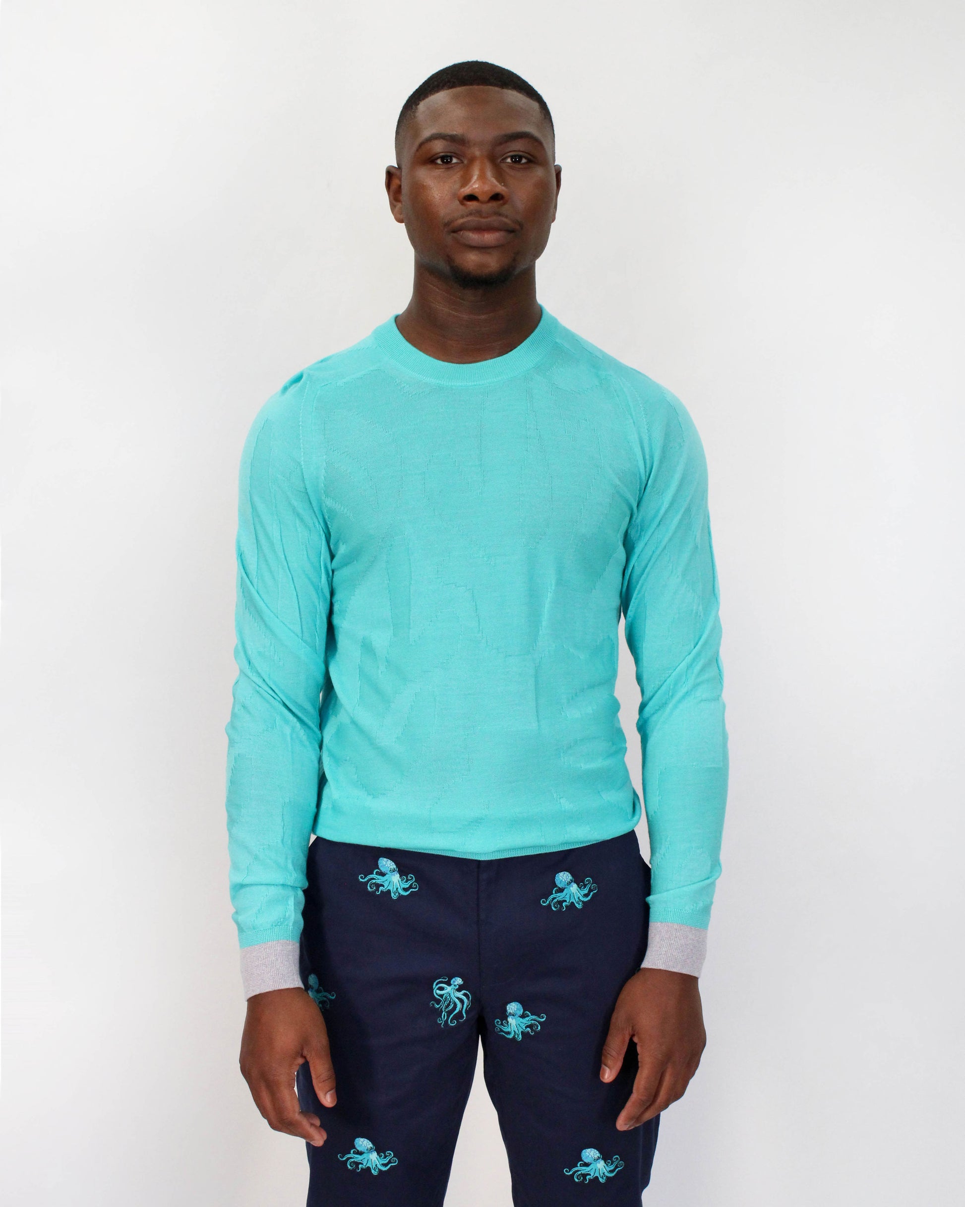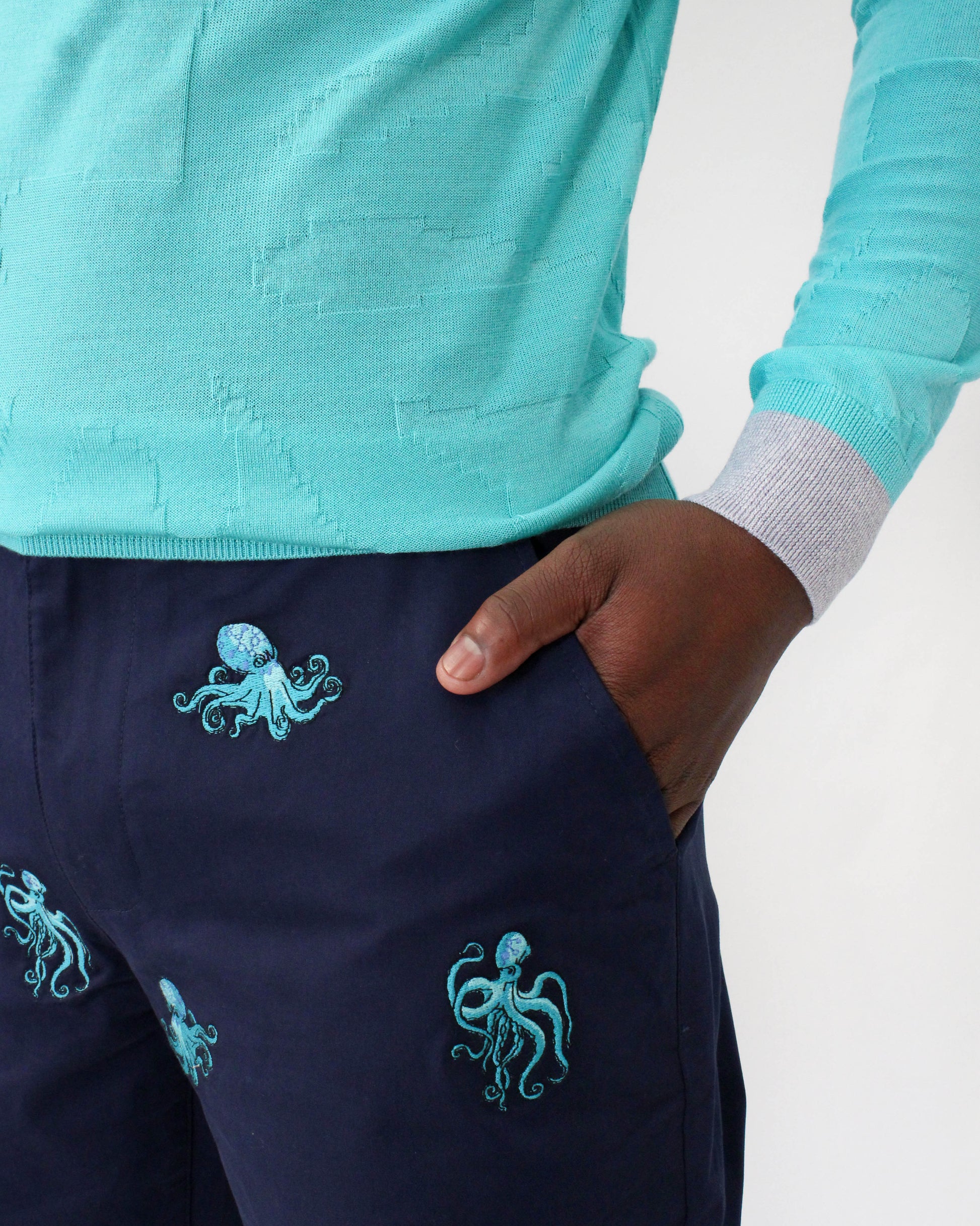 CHARLES OCTOPUS EMBROIDERY PANTS IN NAVY