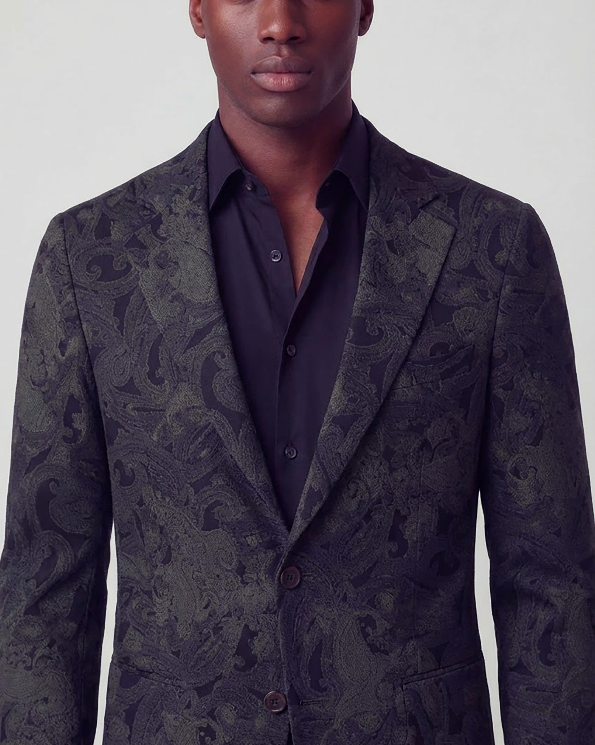 HADRIAN PAISLEY EXPLOSION BLACK MENS TAILORED BLAZER