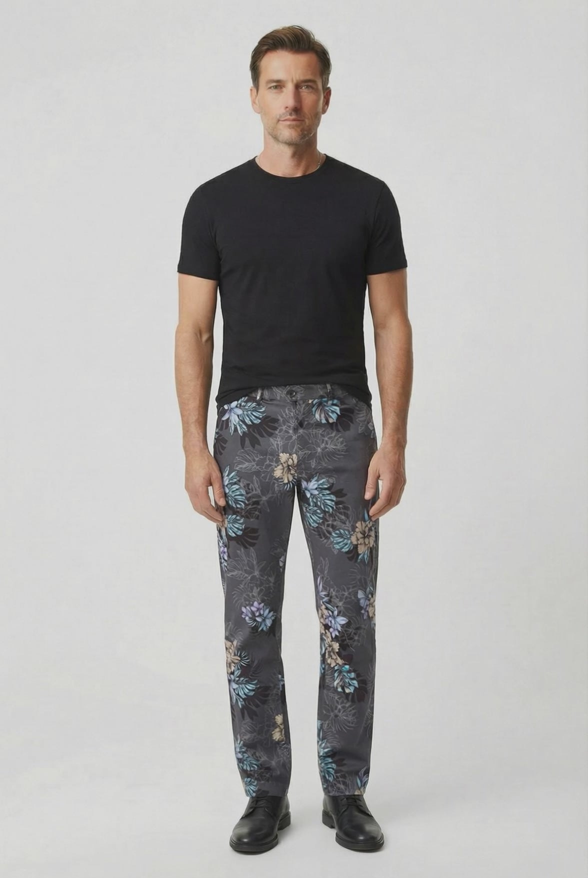 JACK EXOTIC FLORAL BLACK MENS FLAT FRONT PANT
