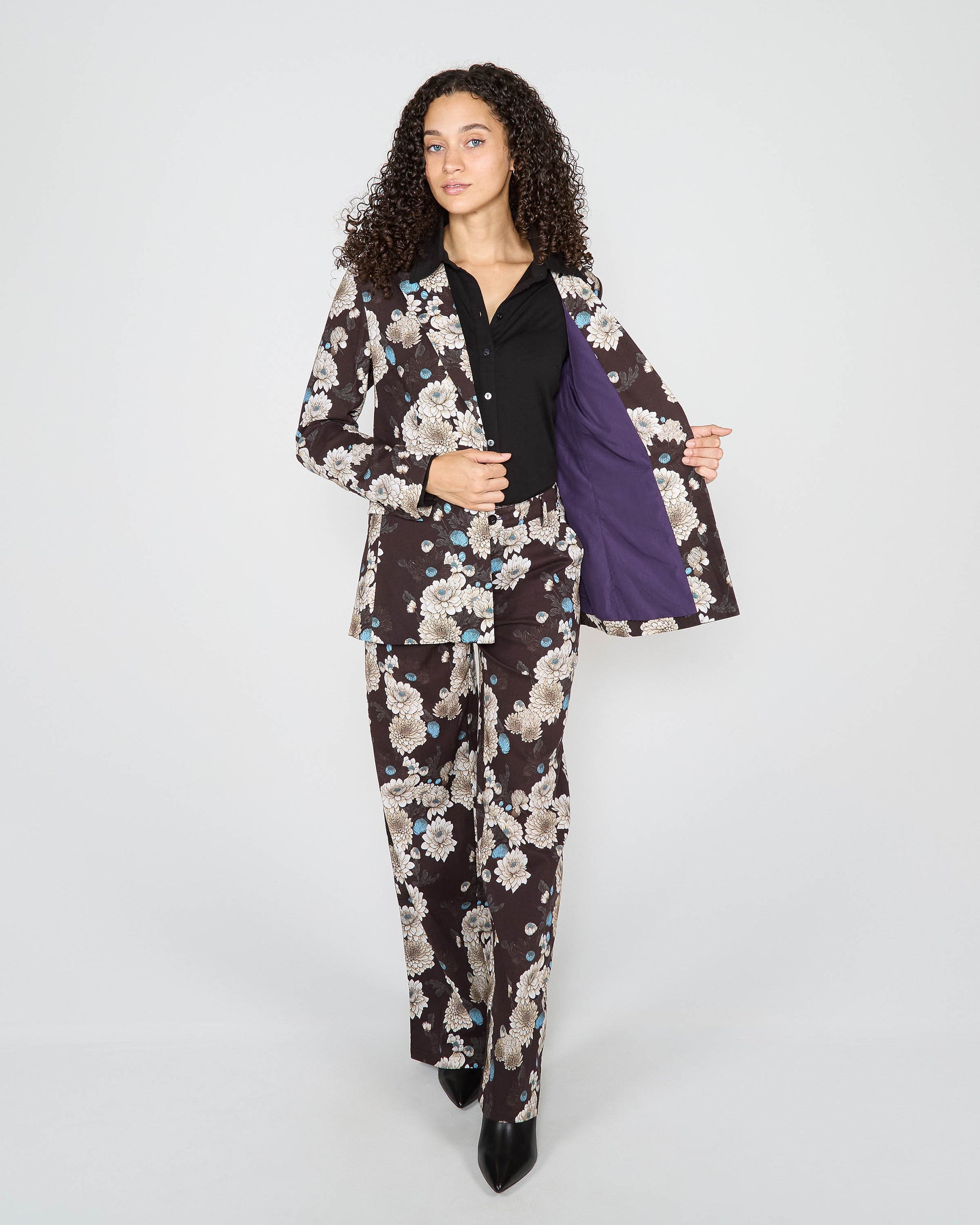 JANE SERIOUS FLORAL TAILORED JACKET - BLACK