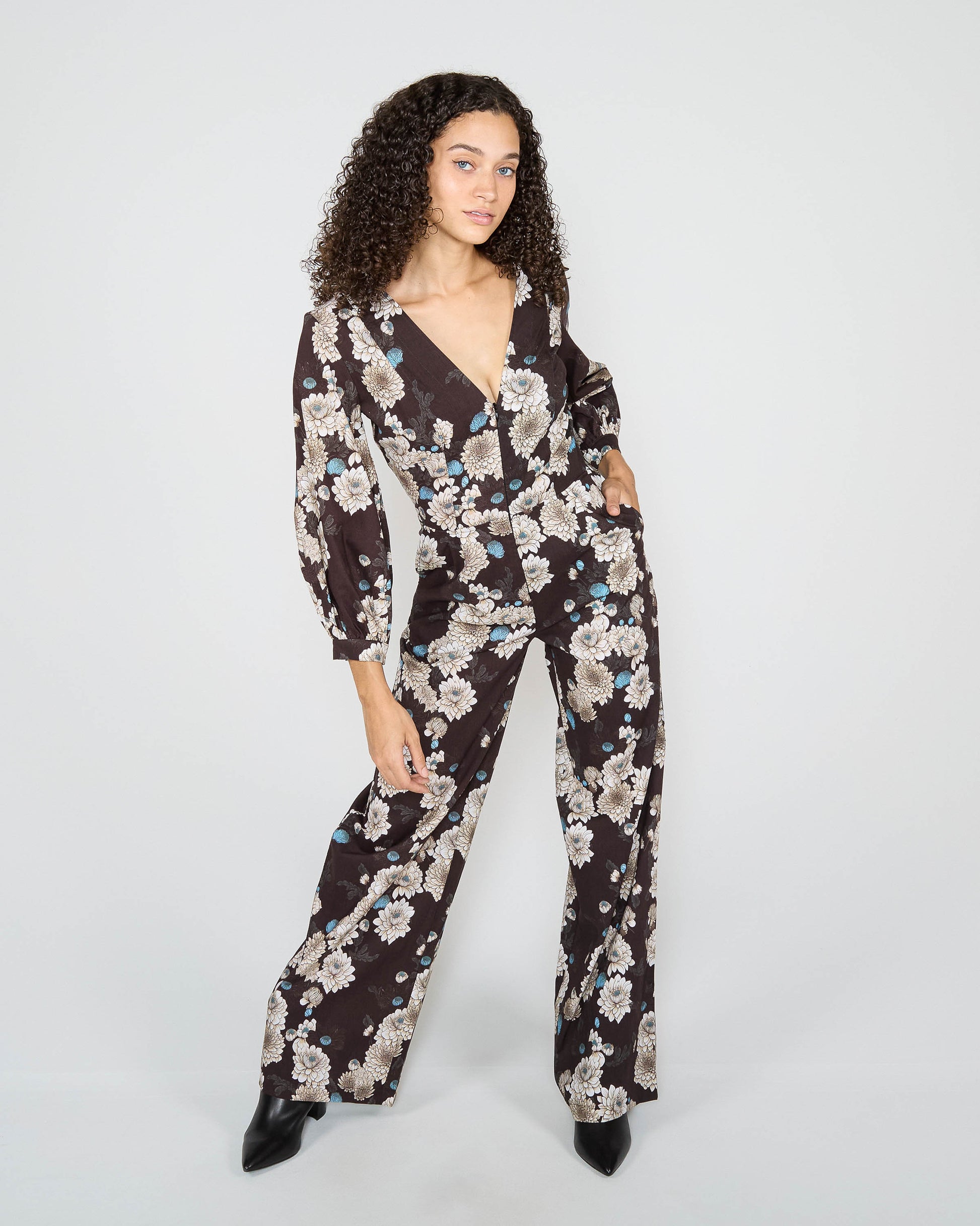 JILL SERIOUS FLORAL JUMPSUIT - BLACK