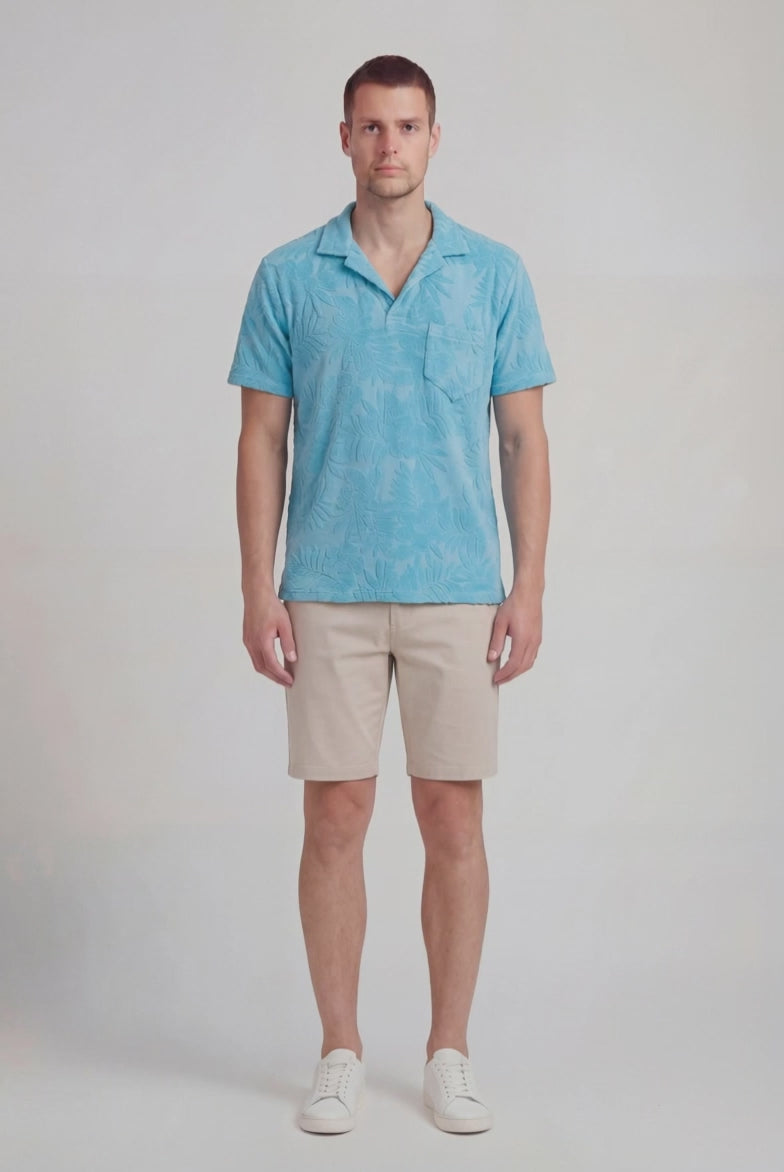 JOHNNY FARM FLORAL TOWEL POLO SHIRT - TEAL