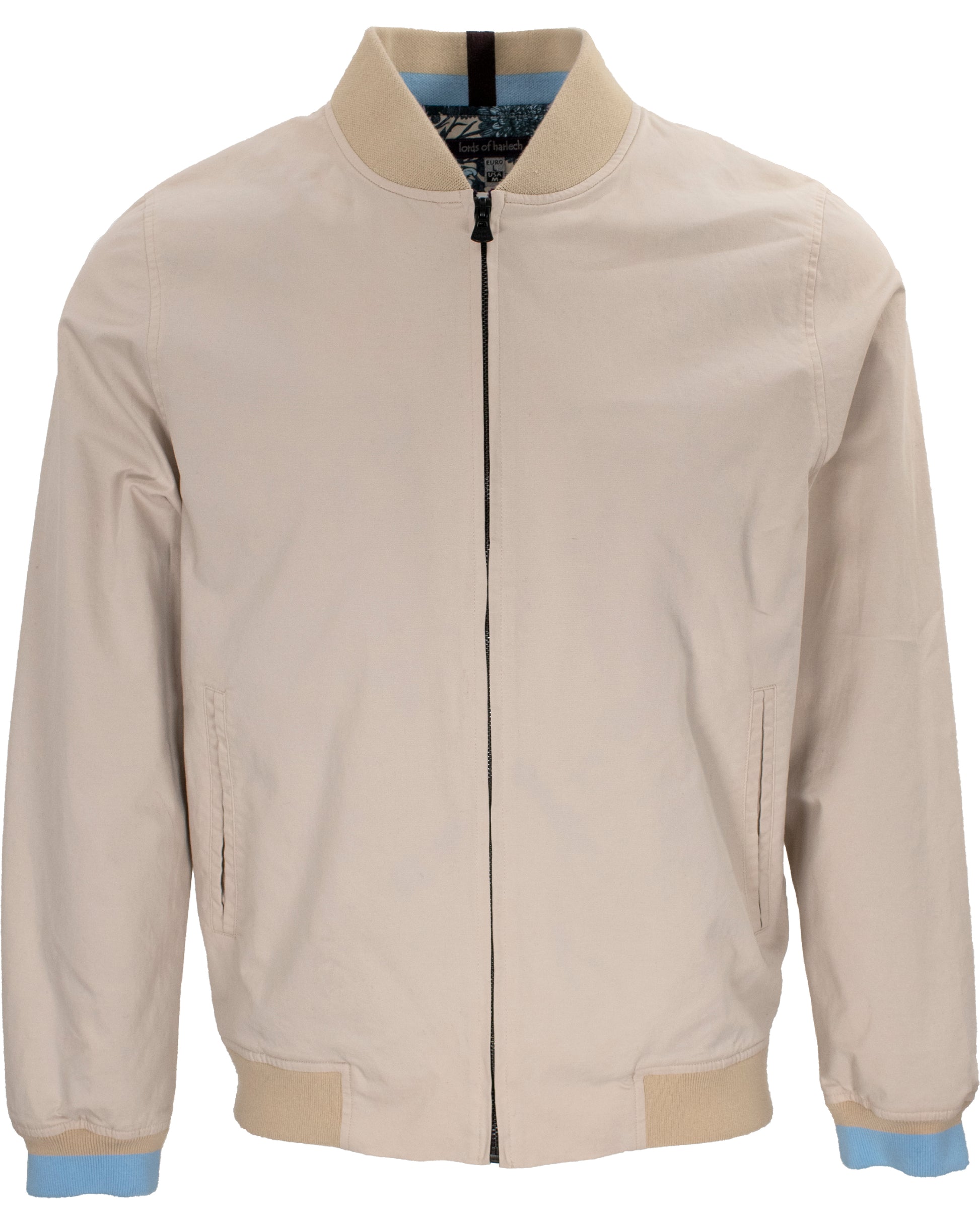 Our Lancaster bomber jacket has a soft butter handfeel made of 95% cotton 5% cashmere. Ribbed cuff detailing with contrasting colors. Zip closure. Interior breast pockets and contrasting pattern printed on inside of jacket lining. This will become your favorite jacket, perfect for any occasion.