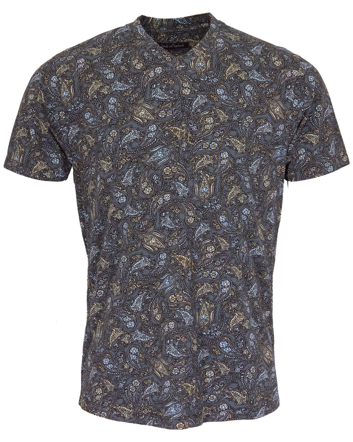 MAZE MADRID PAISLEY V-NECK TEE - BLACK
