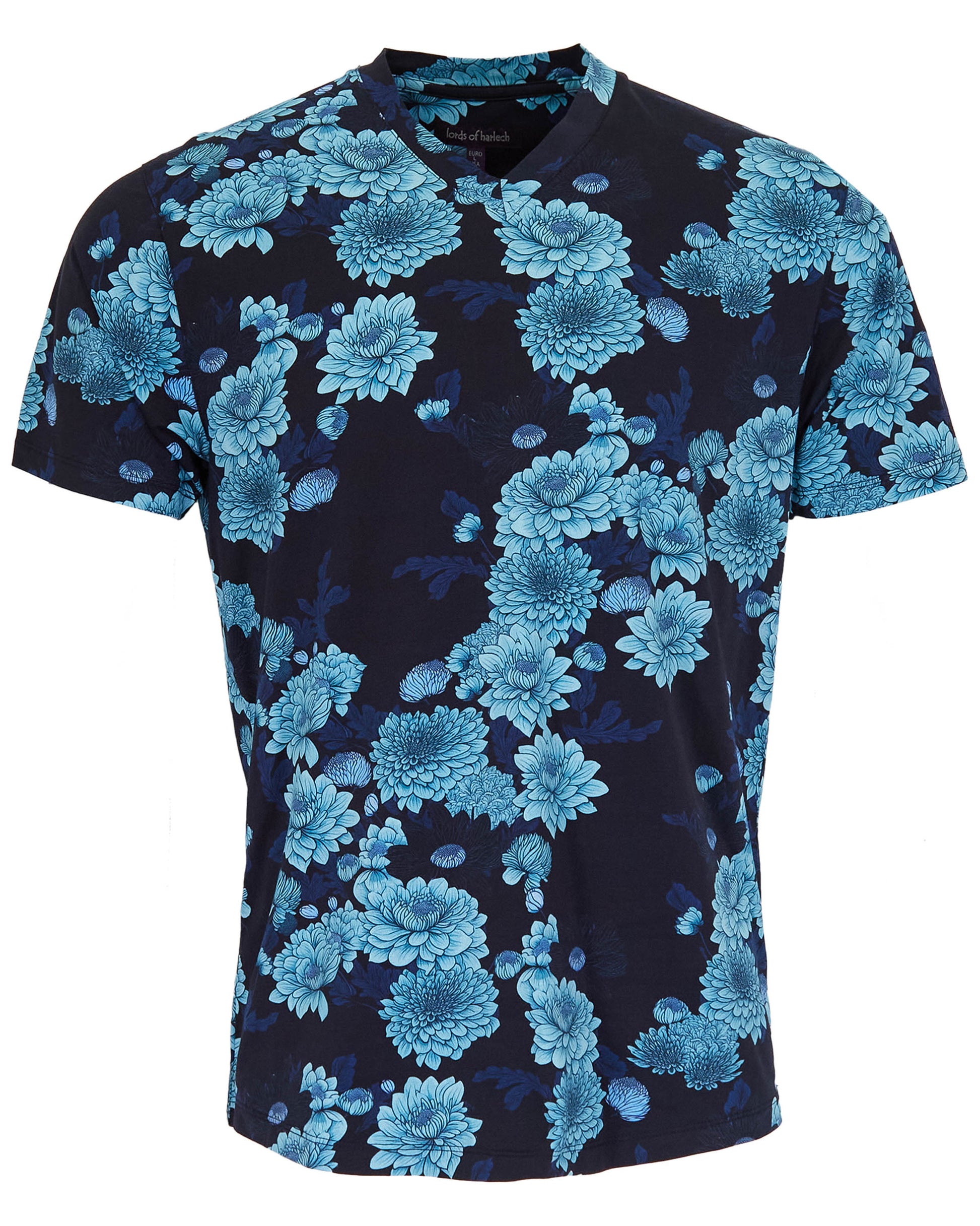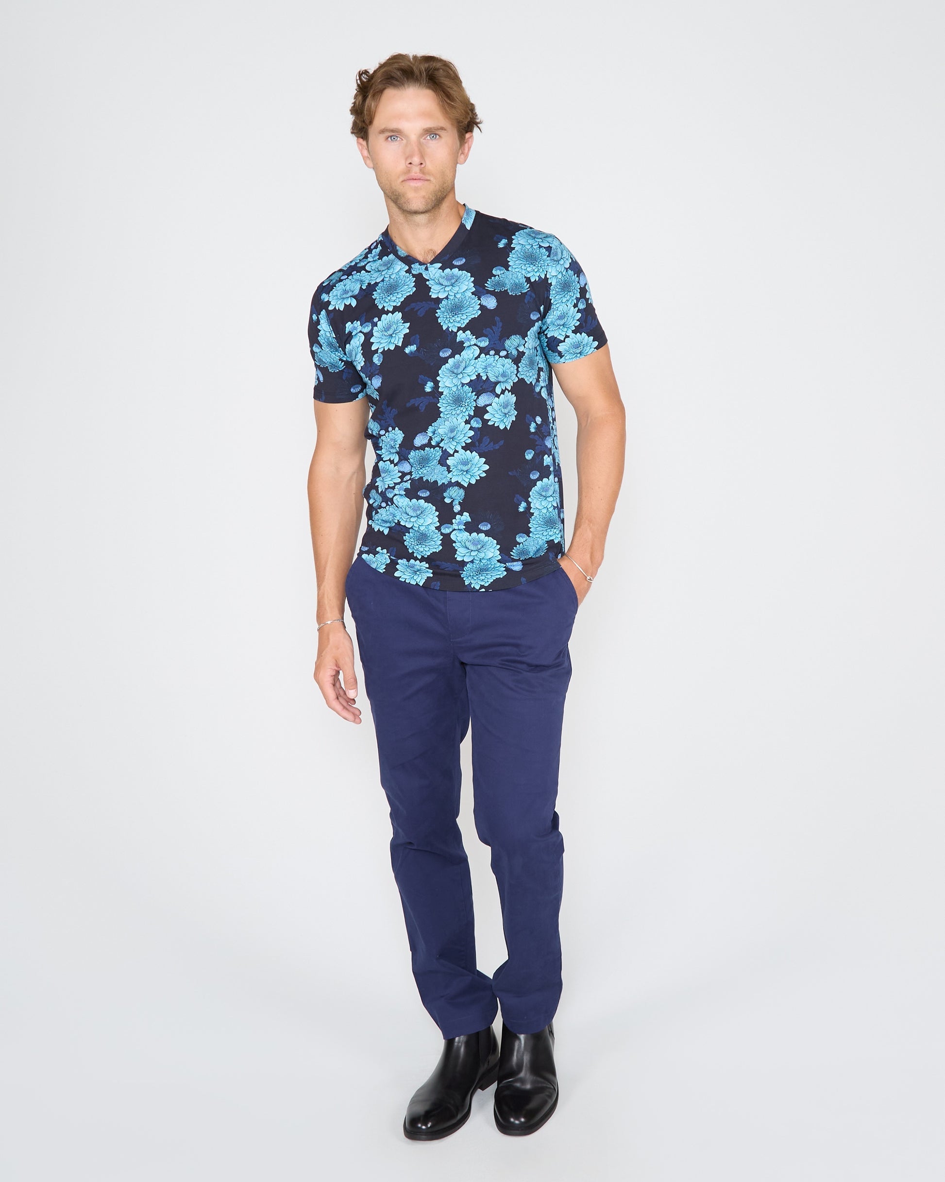 MAZE SERIOUS FLORAL V-NECK TEE - NAVY
