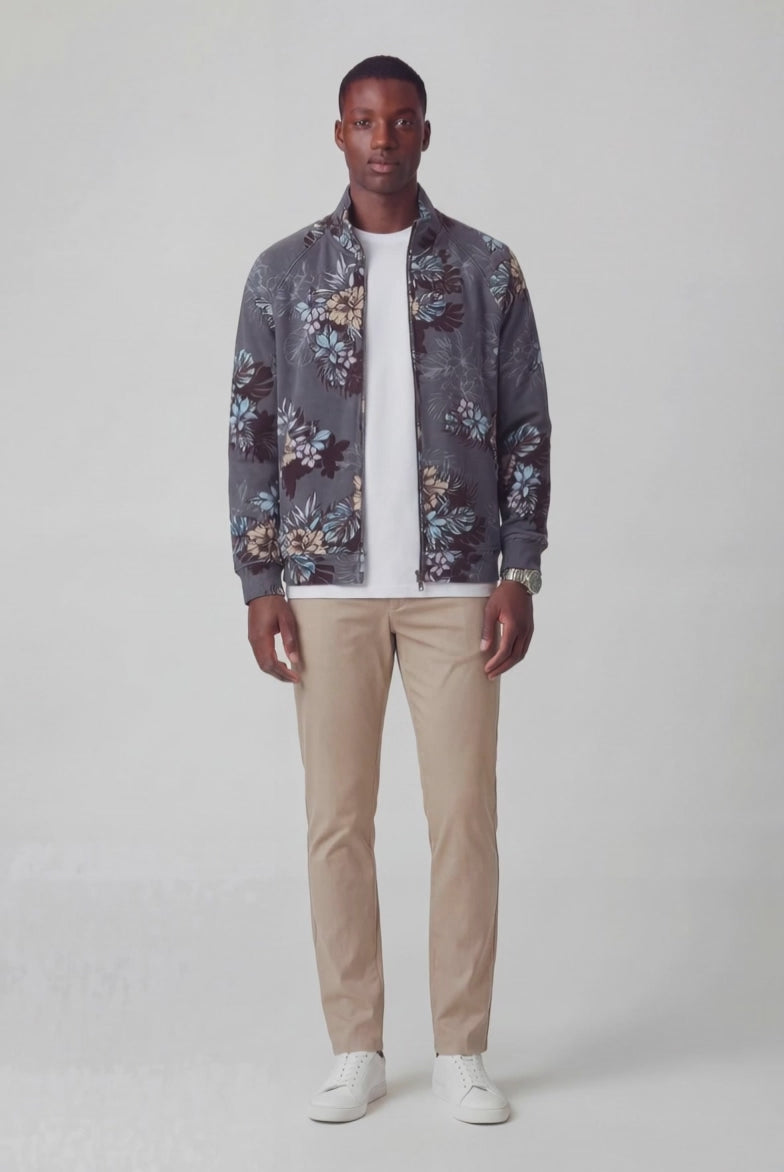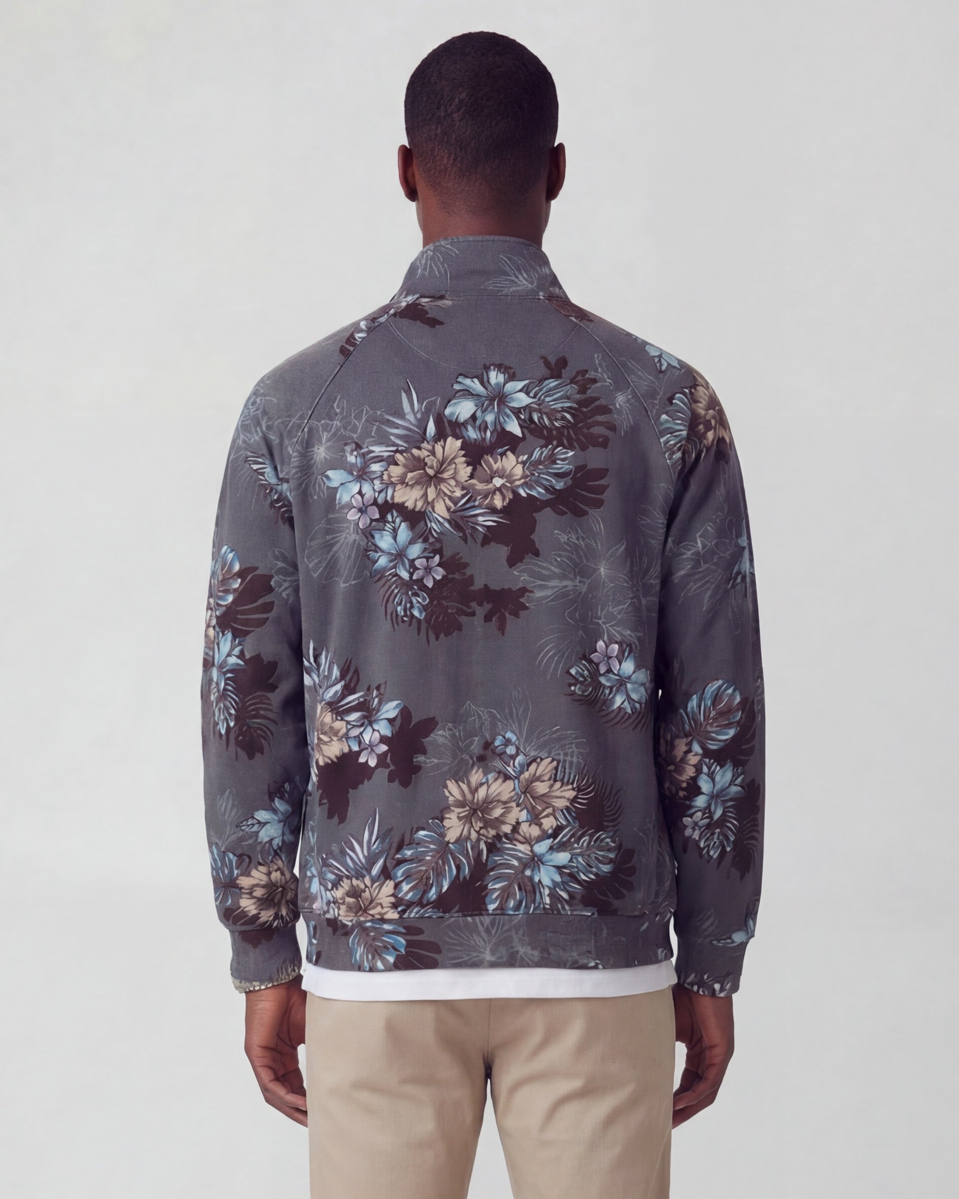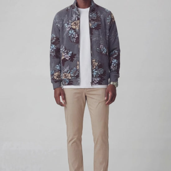 NEVILLE EXOTIC FLORAL BLACK MENS PRINTED ZIP JACKET