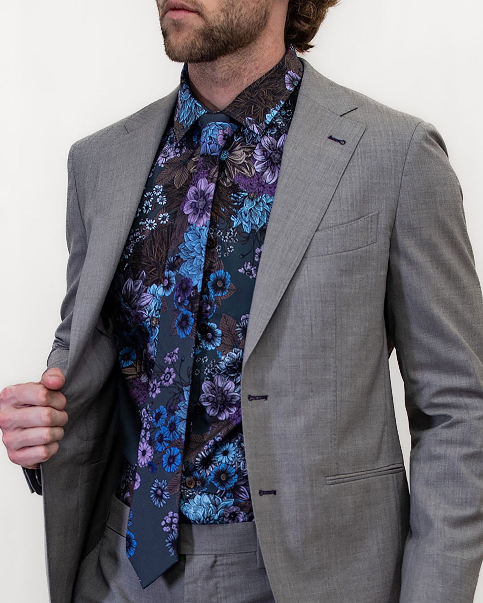 NICOLI MARCO FLORAL COTTON SHIRT - CHARCOAL