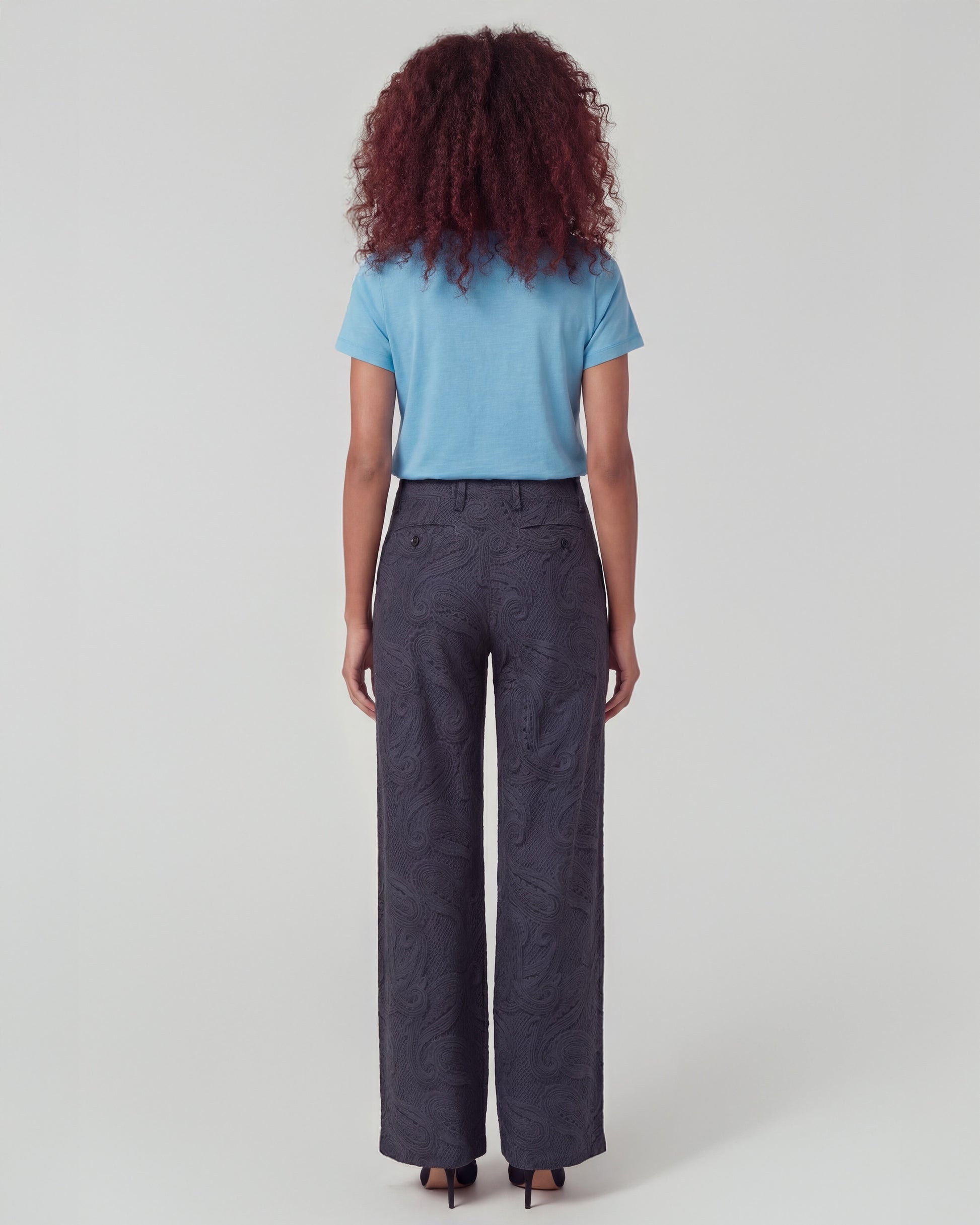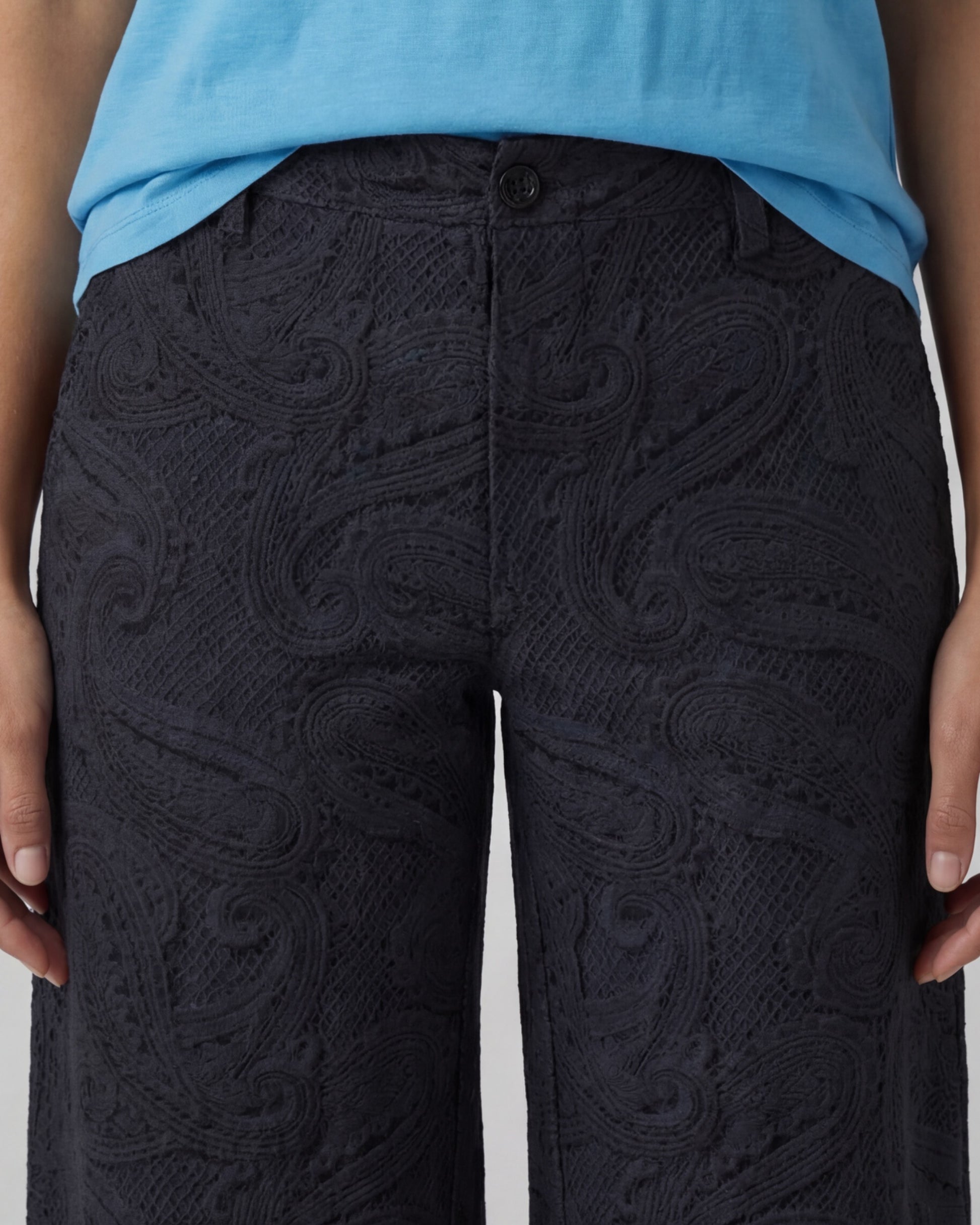 PHEOBE CROCHET PAISLEY CAVIAR WOMENS WOOL WIDE-LEG PANT