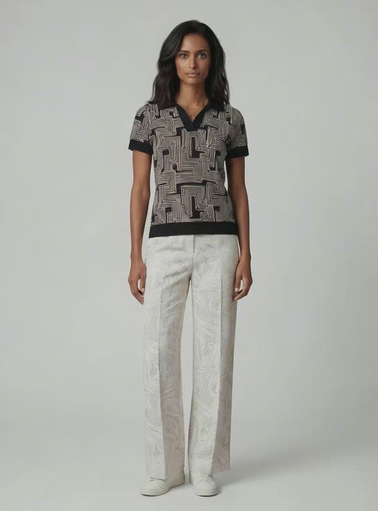 PHEOBE CROCHET PAISLEY IVORY WOMENS WOOL WIDE-LEG PANT