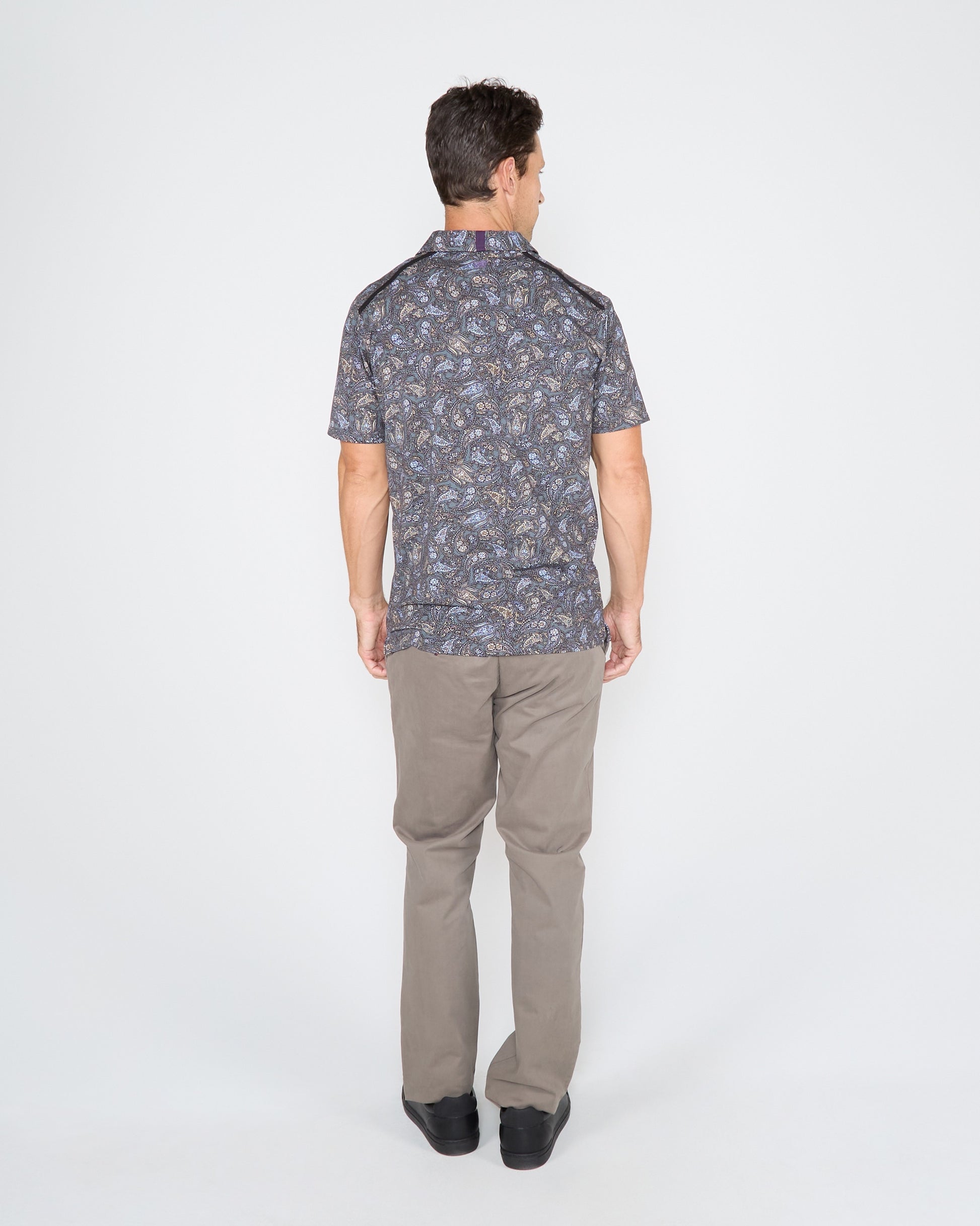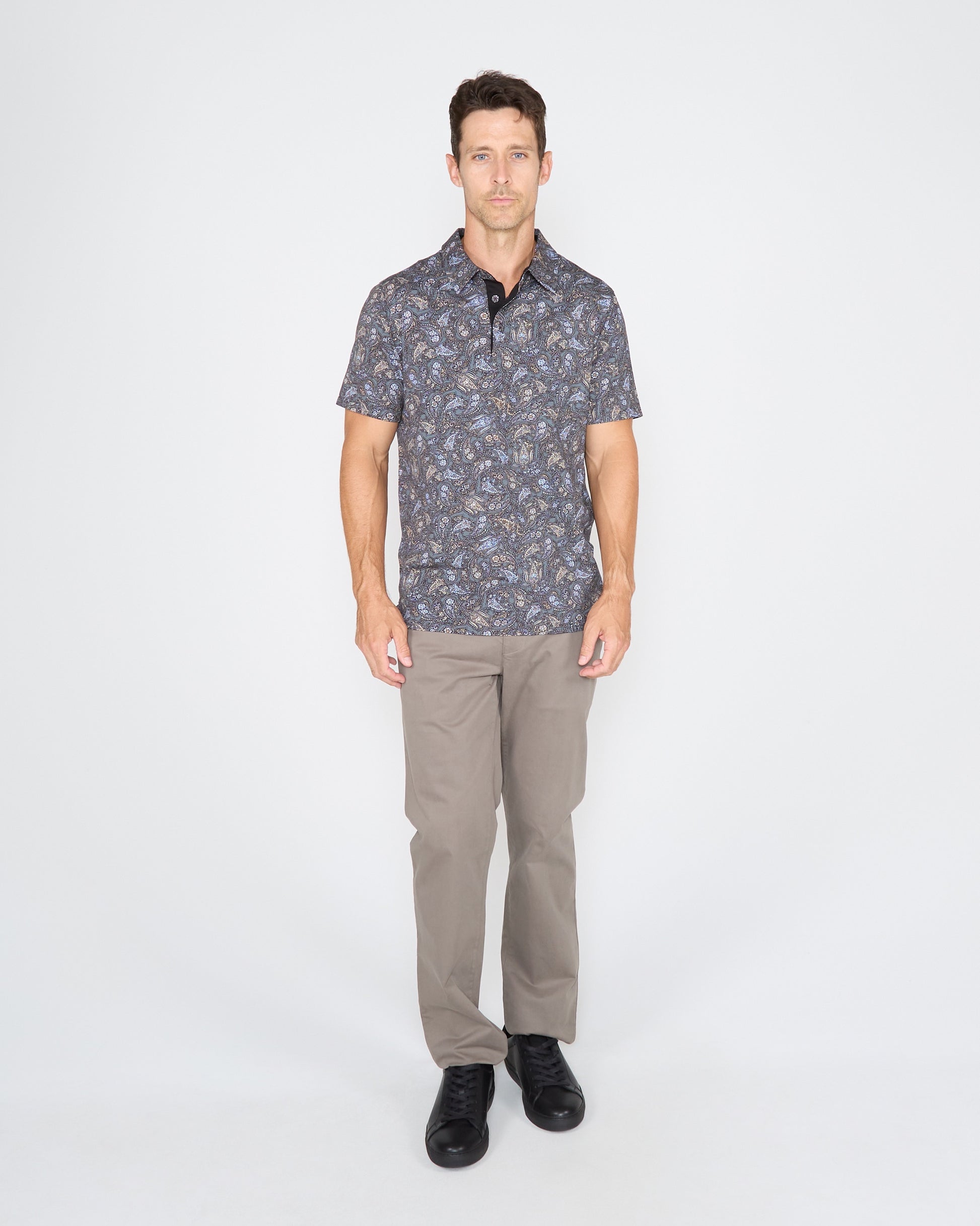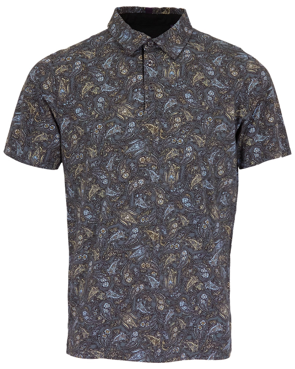 PIETRO MADRID PAISLEY POLO SHIRT - SMOKE