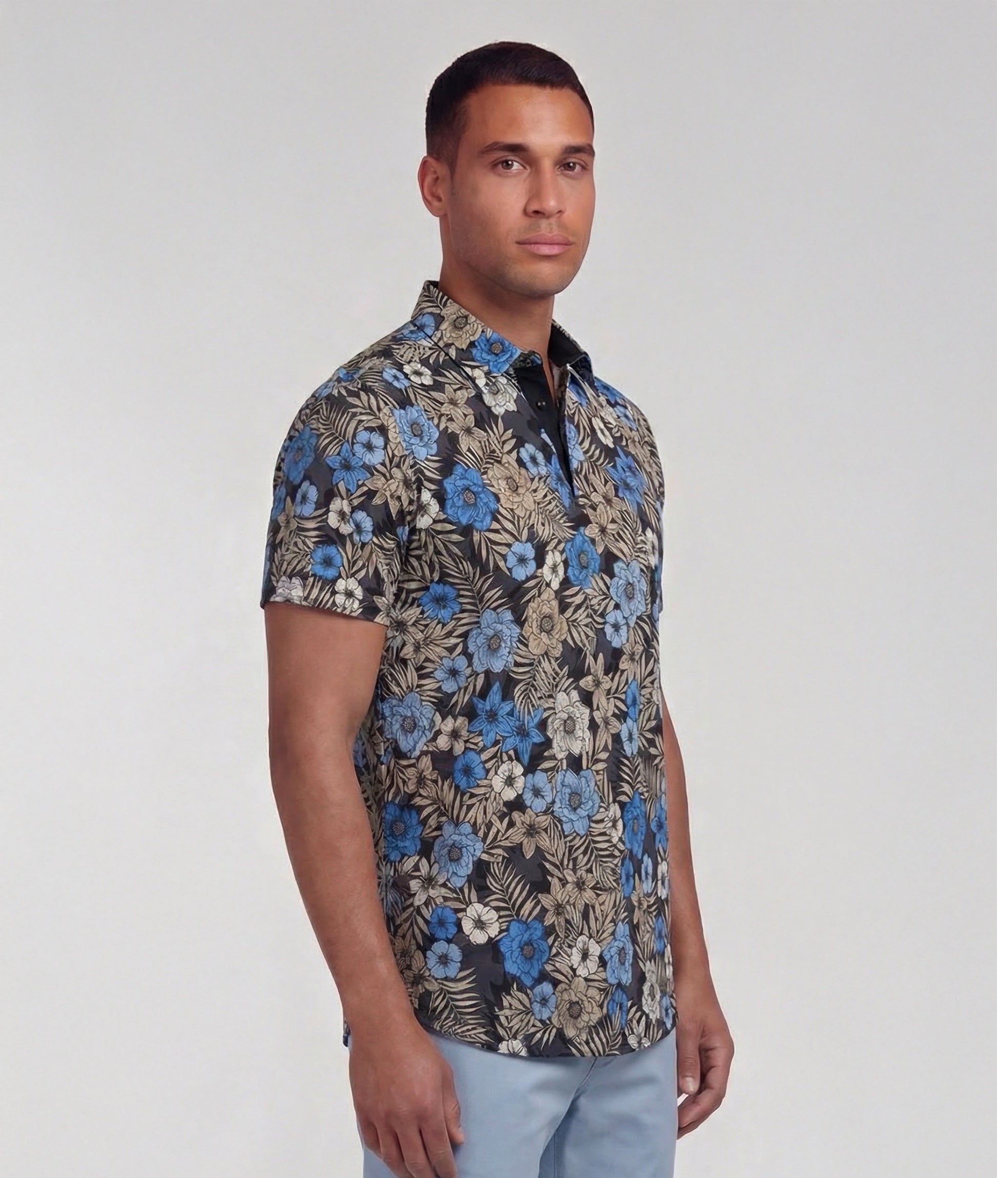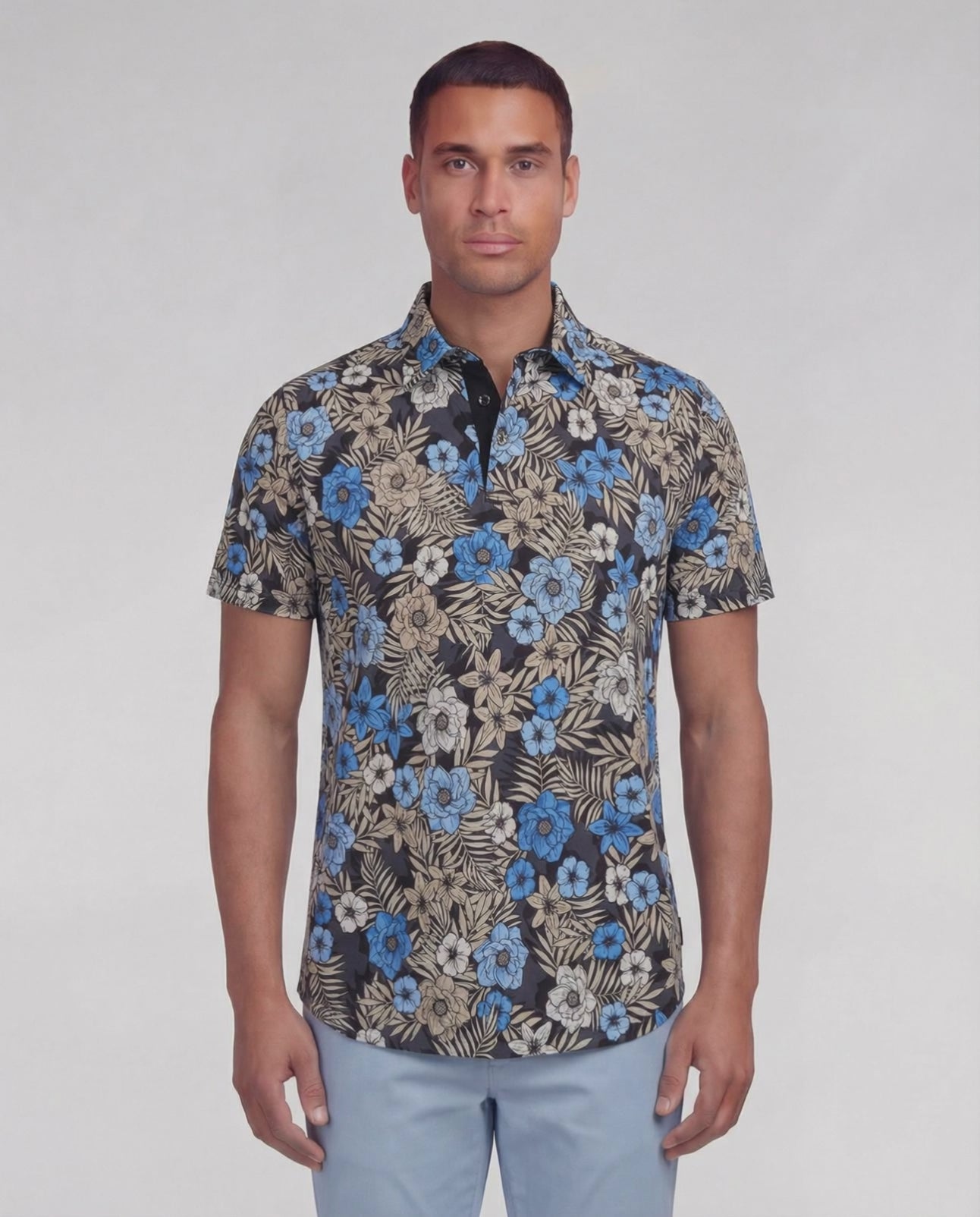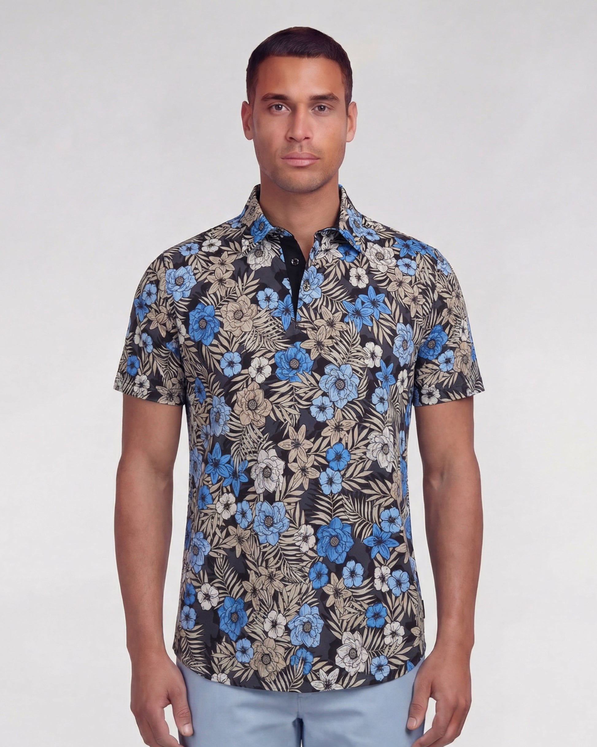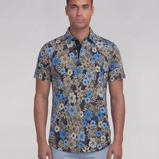 PIETRO TROPICAL MIX BLACK MENS KNIT POLO