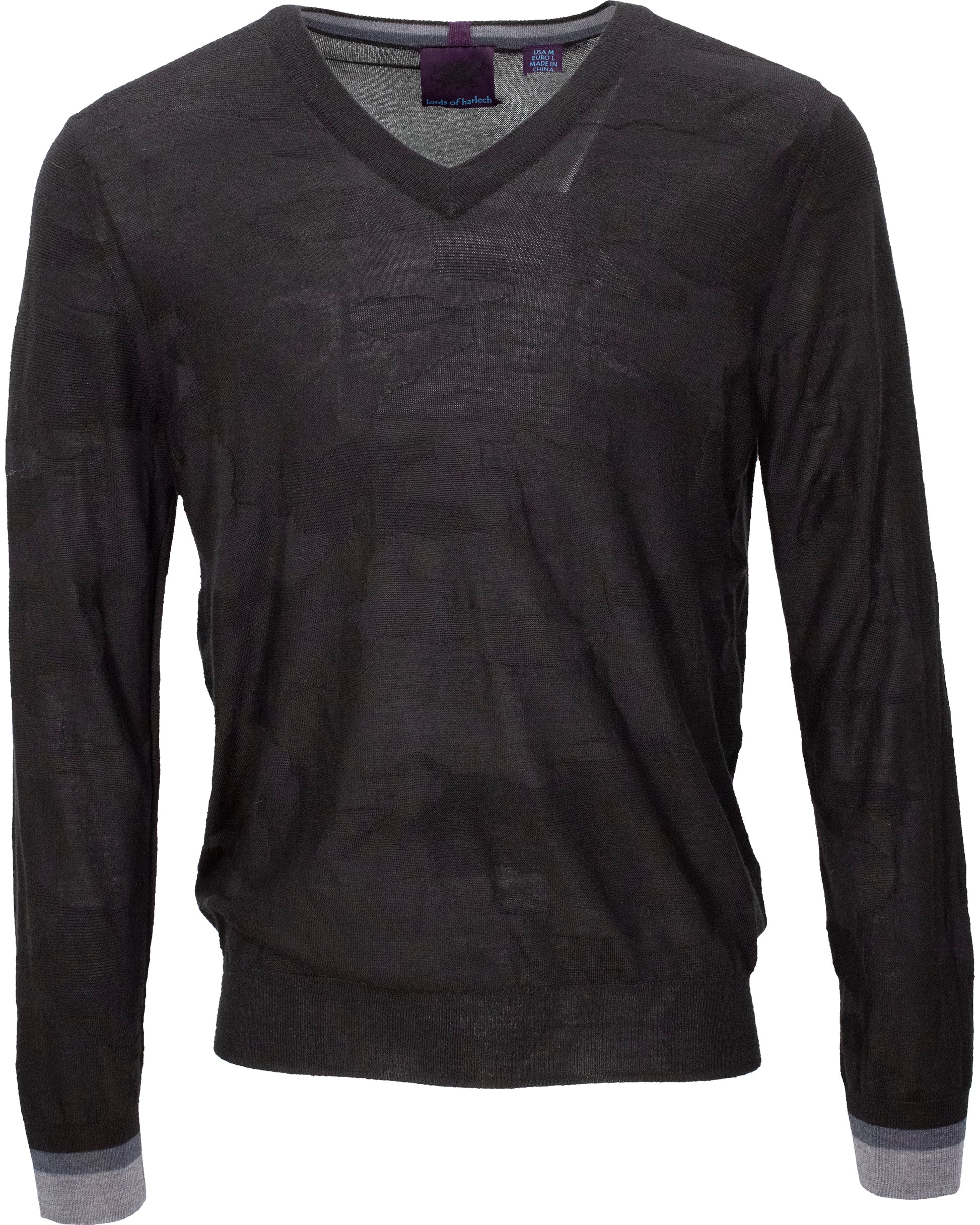 Great ingredients make great sweaters. The Robert sweater is made from a special blend of textured yarn (merino, silk and cashmere). They all come together (in a tasteful pattern) to create the comfort food of sweaters. Yum.