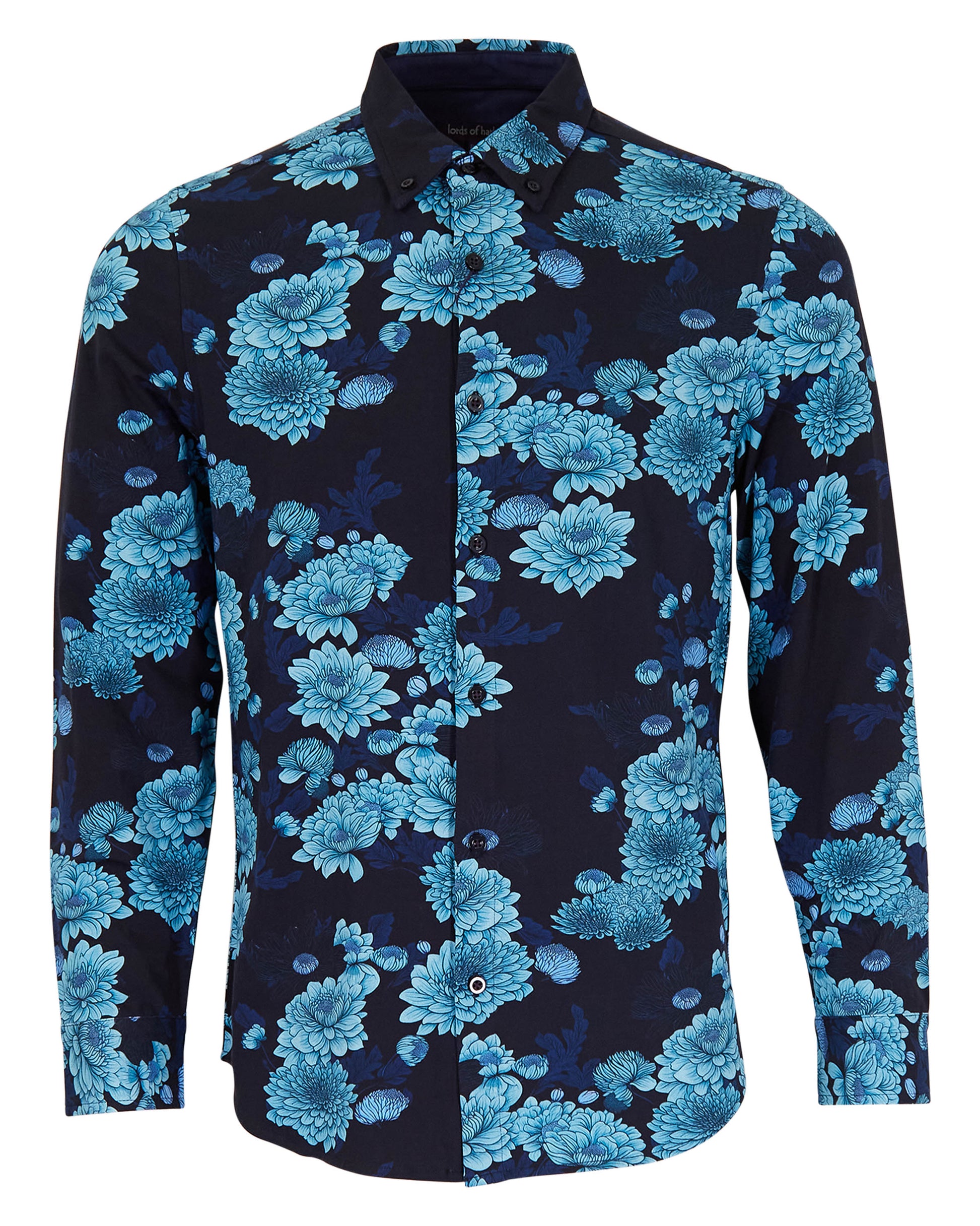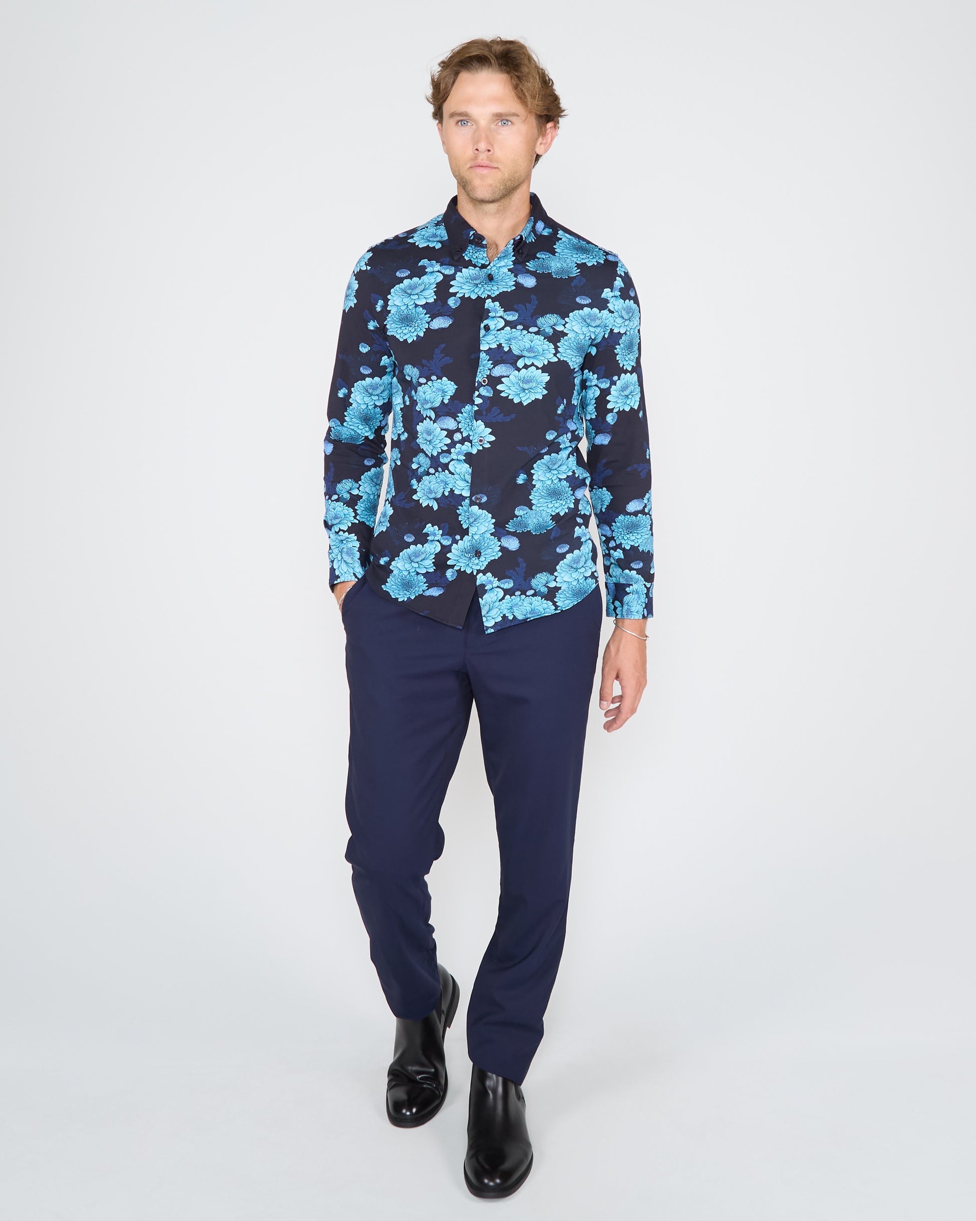 SAWYER SERIOUS FLORAL KNIT SHIRT - NAVY