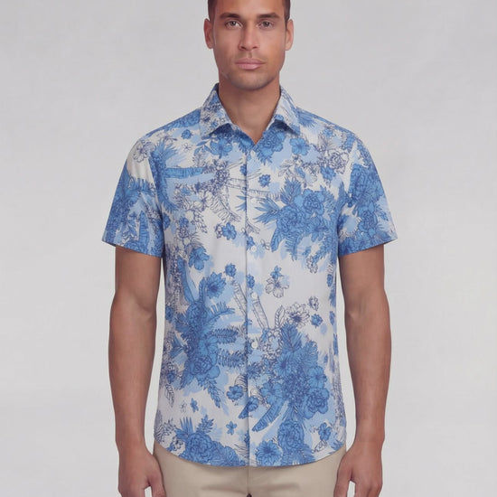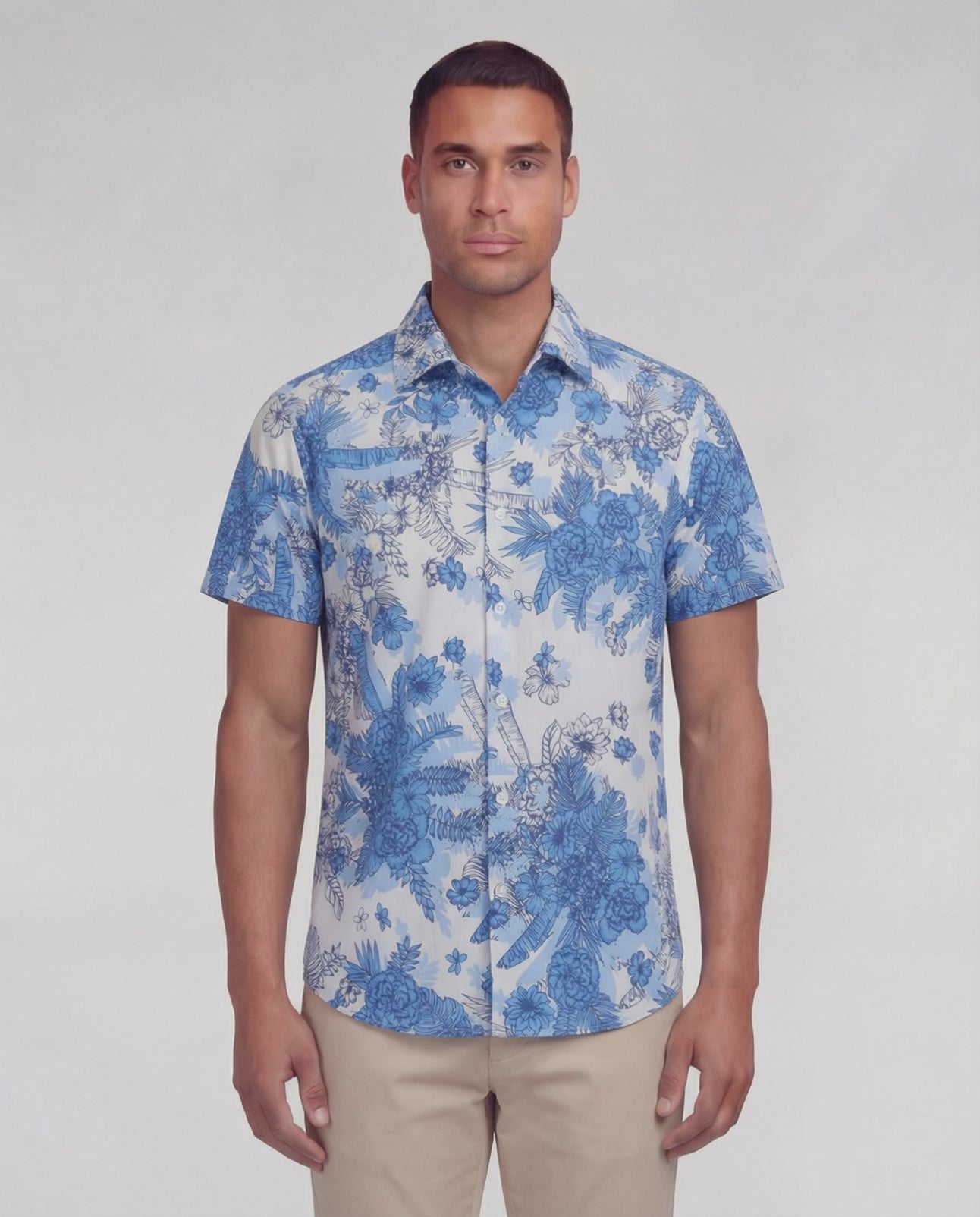 Crafted from breathable cotton, the Scott shirt delivers crisp structure with an easy, warm weather feel. Designed for everyday resort dressing, it brings a polished presence while staying comfortable in heat and humidity. Pair it with the solid Jack pant or John short for a balanced look that lets the print lead.