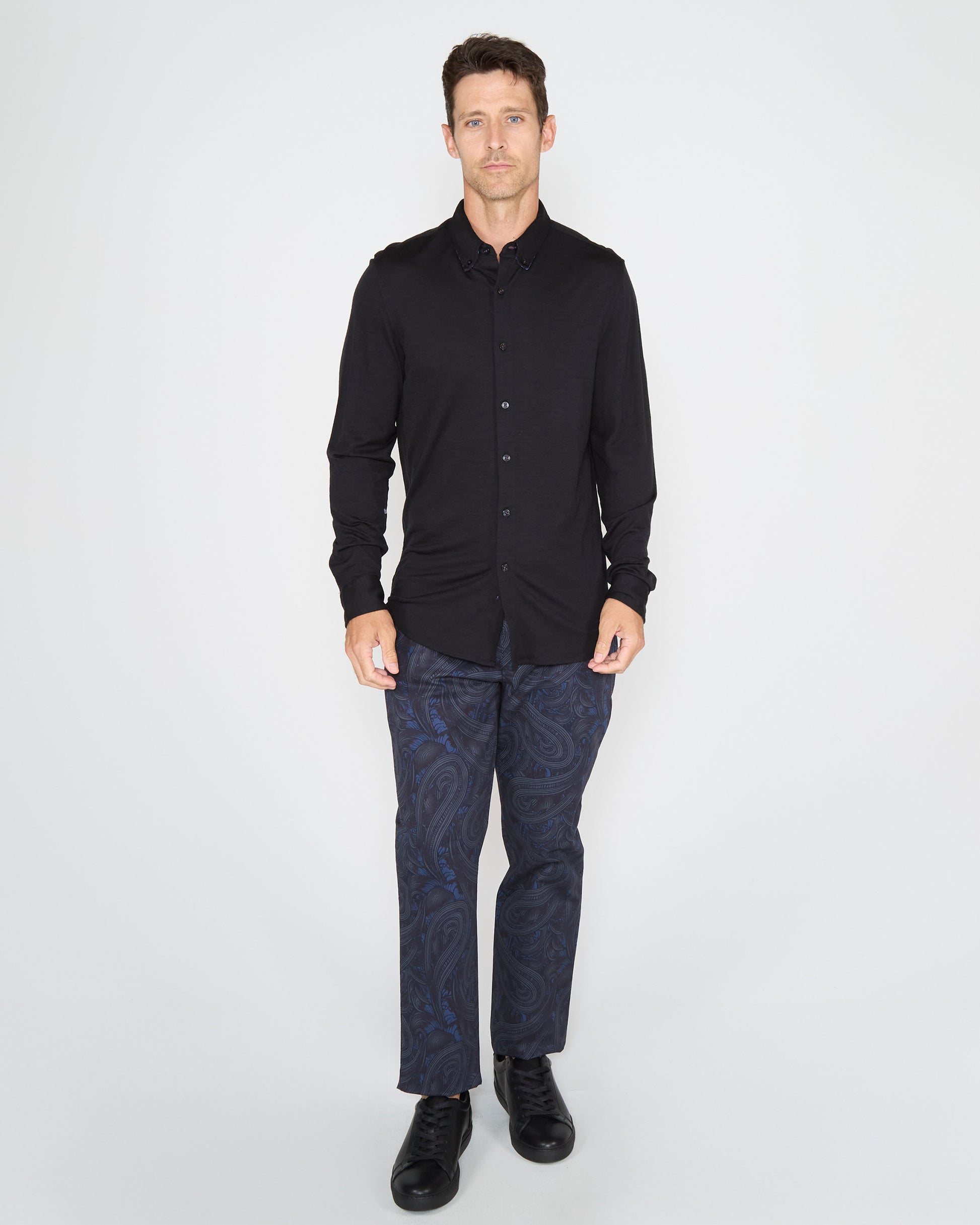 The Shawn shirt is extra fine. That?s largely because it?s made from extrafine Merino jersey. A lightweight fabric that is also very smart. It knows when to warm you up and when to chill. You could say it?s one fab fabric, for sure.