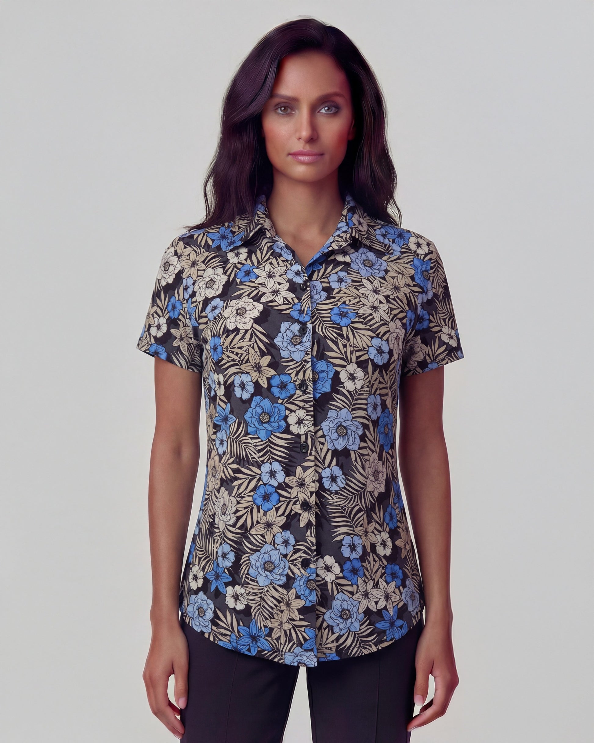 SHELLEY TROPICAL MIX BLACK WOMENS PRINTED SHIRT