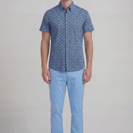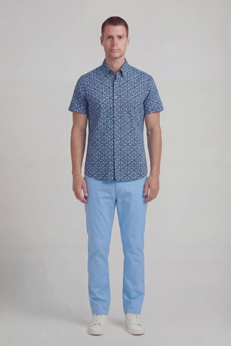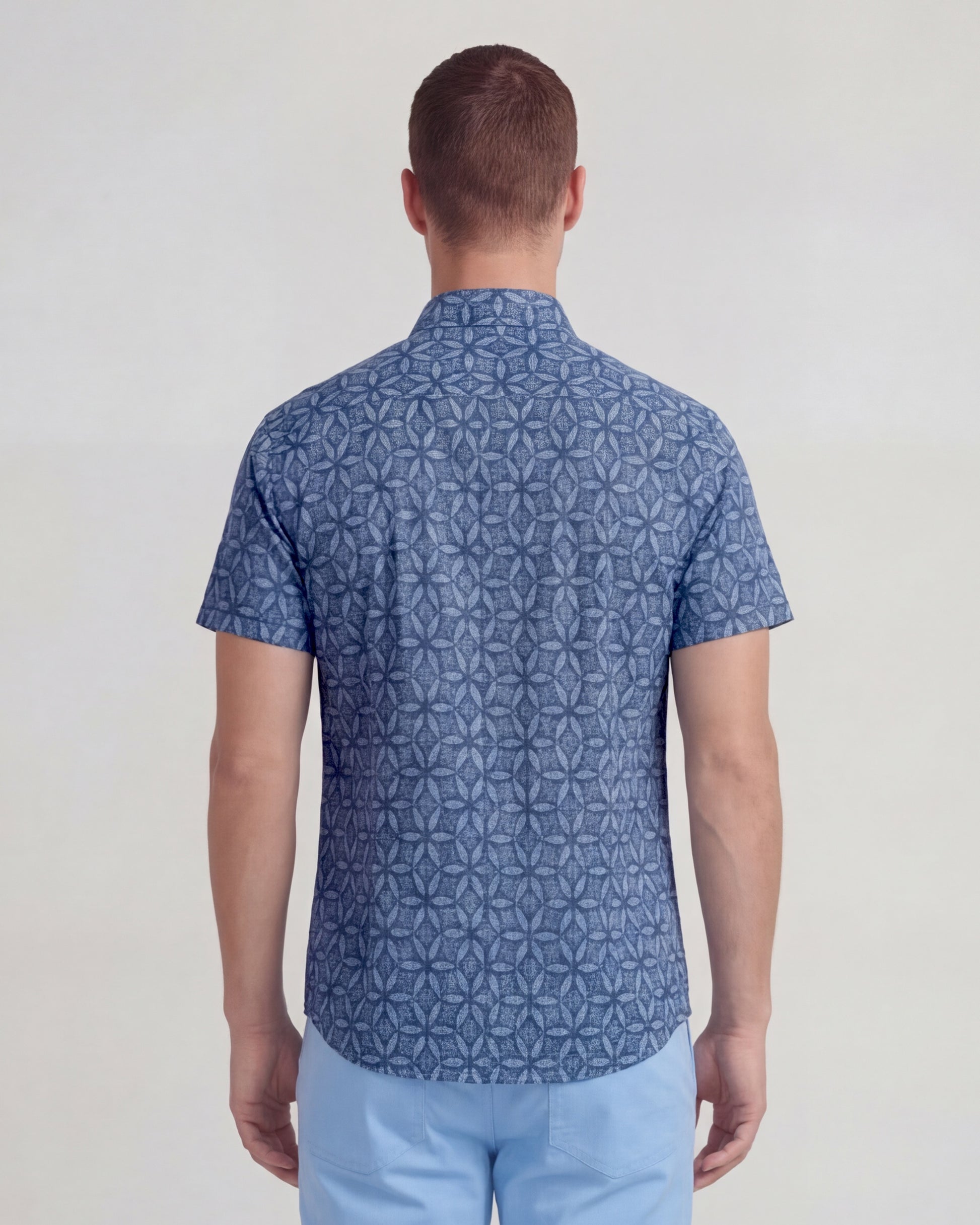 TOBIAS TRIBAL BLUE MENS MERINO WOOL BUTTON-UP SHIRT