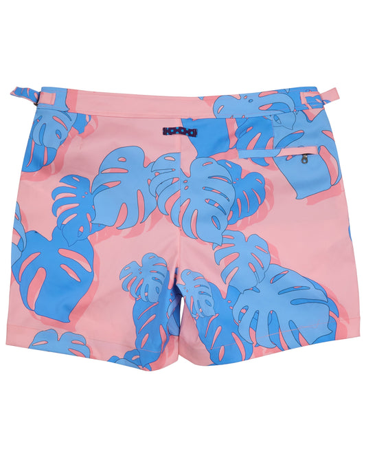 POOL MONSTERA FLORAL CORAL TAILORED MENS SWIM SHORT