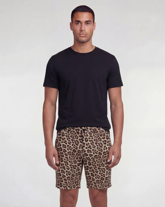 EDWARD LEOPARD BROWN MENS FLAT FRONT SHORT
