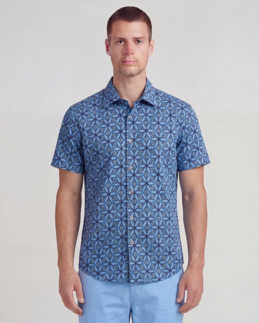 GEORGE TRIBAL BLUE MENS PRINTED BUTTON UP SHIRT