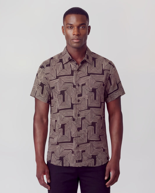 TOBIAS MUD GEO CORAL MENS MERINO WOOL BUTTON-UP SHIRT