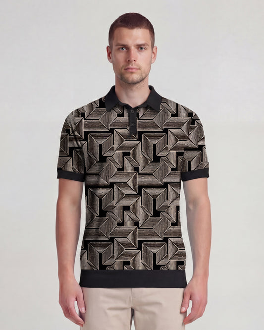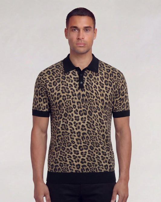 PILGRIM LEOPARD BROWN MENS MERINO SILK CASHMERE POLO