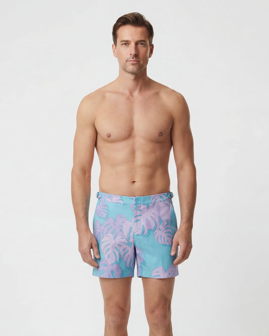 POOL MONSTERA FLORAL TEAL MENS TAILORED SWIM SHORT