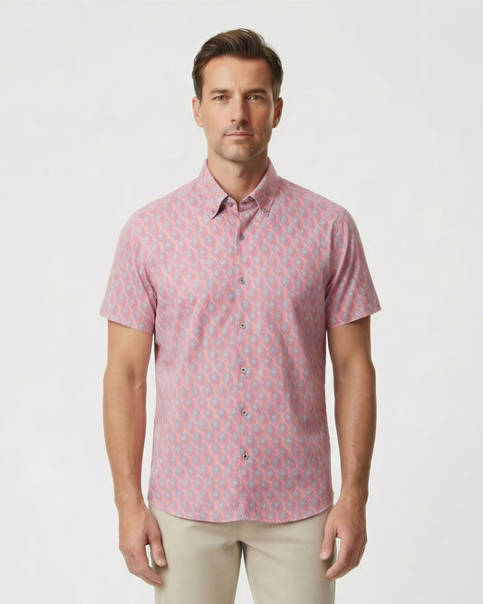 GEORGE MUD GEO CORAL MENS PRINTED BUTTON UP SHIRT