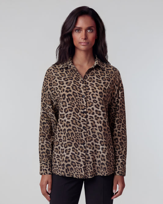 LYDIA LEOPARD BROWN WOMENS TUNIC SHIRT